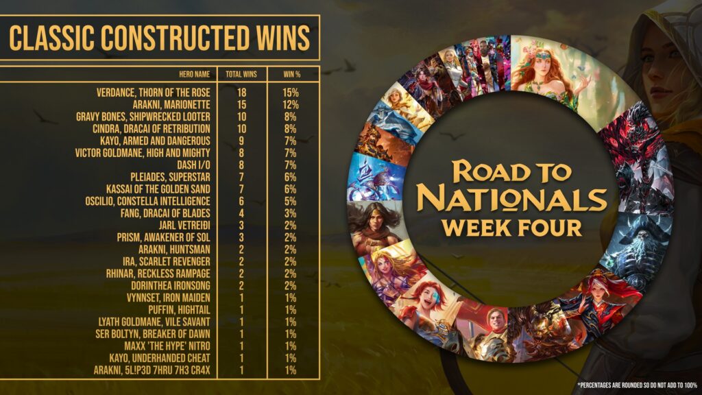 Road to Nationals 2026 Week 4 has put us well over half way. The format has already taken one hero off to the realm of Living Legend, and the power vacuum has already been filled by other decks.